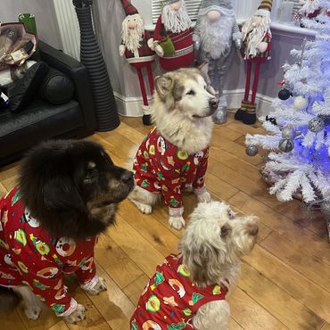 Here are my 3 fur babies, Storm the gentle Tibetan Mastiff, Kiyomi The boisterous Alaskan Malamute, and little Loki the mischievous Cockapoo.